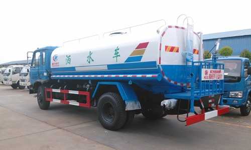 上裝配置:罐體采用4mm厚武鋼集團供應的罐車專用板材制作,罐體容積:15立方;罐內防浪隔板具有防波作用,減低罐內液體的沖擊。配備國內知名品牌日本技術大功率灑水車專用水泵,可自吸自排,引水時間<10min,流量60m3/h,揚程90米。東風天龍灑水車其它專用部分標配為:前沖、后灑、側噴、后工作平臺、360度可調節綠化水炮,垂直吸程≧7米,灑水寬度≧16米,綠化水炮射程≧35米,自流閥、濾網、消防接口(可連接消防栓取水,可作應急消防用)。罐前量管(觀察罐內水位)、罐后爬梯、罐上罐口帶簡易護欄、罐側雙炮筒、3米長4寸鋼絲塑膠管兩根,罐體表面雙層油漆工藝,防銹、耐腐蝕,其余有廠家標配。
