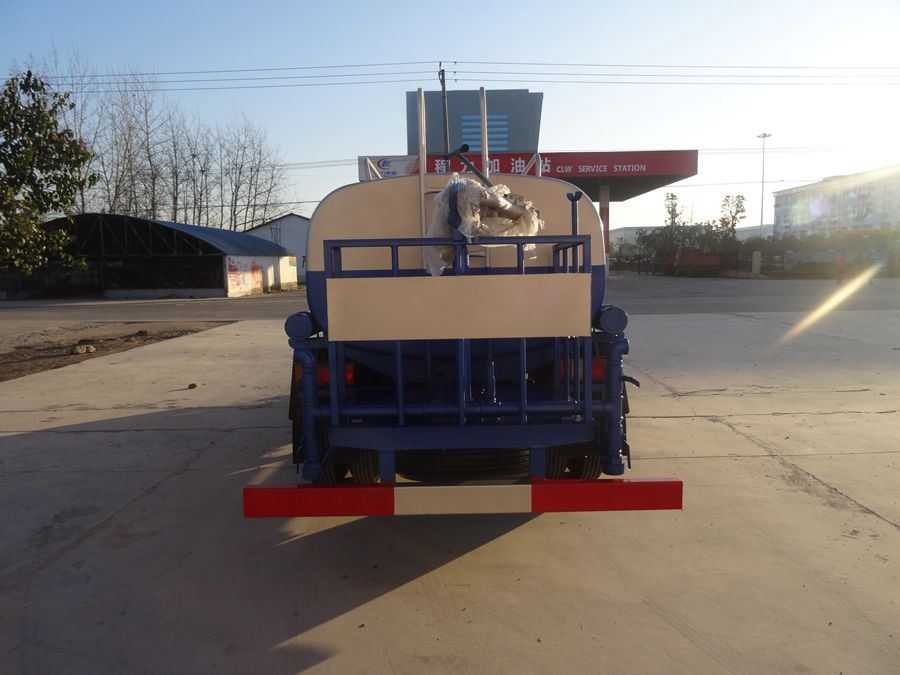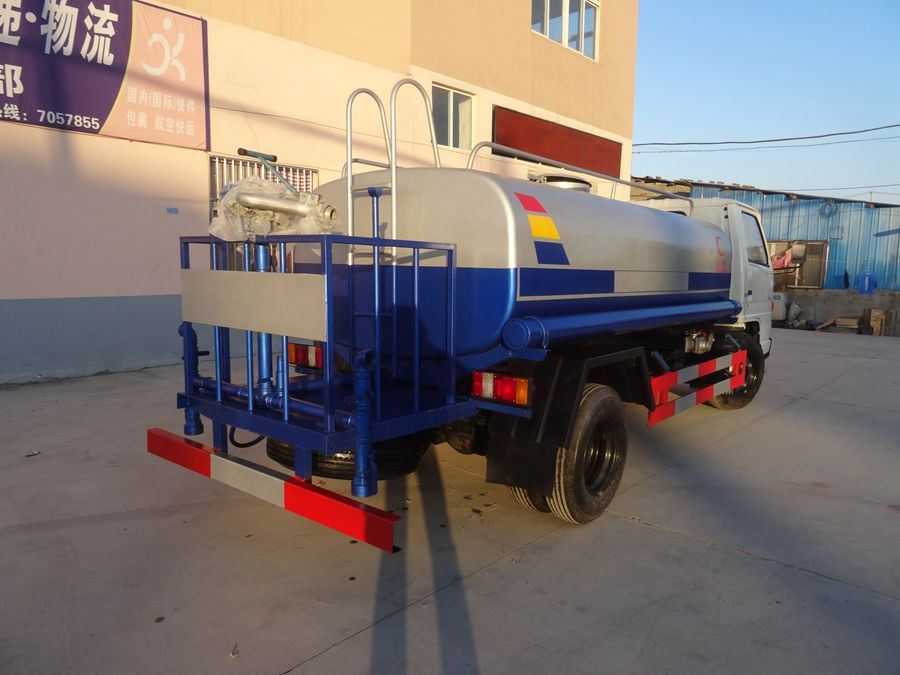 改裝配置:罐體采用4mm厚武鋼專用容積板制作,實(shí)際容積5立方,罐內(nèi)隔板具有防波作用,以減低汽車行駛時(shí)罐體液體的沖擊。泵 進(jìn)泵出,消防栓接口,前沖、后灑、側(cè)噴、后工作平臺(tái)帶綠化水炮,垂直吸程≧7米,灑水寬度≧14-16米,射程≧20-25米,引水時(shí) 間<5min,流量90m3/h。自流閥、濾網(wǎng)、帶自吸自排功能。兩根等長輸水管,金屬漆,其余標(biāo)配。可加裝藥盤、氣動(dòng)控制閥、噴藥設(shè)備、非車帶泵動(dòng)力等。