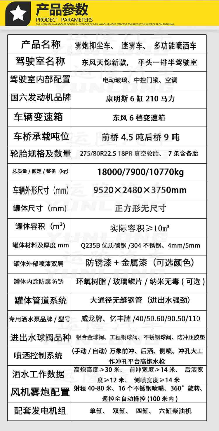16噸圓罐東風隨專多功能抑塵車,60-120米霧炮車