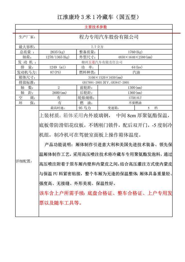 江淮康鈴國五3米1冷藏車