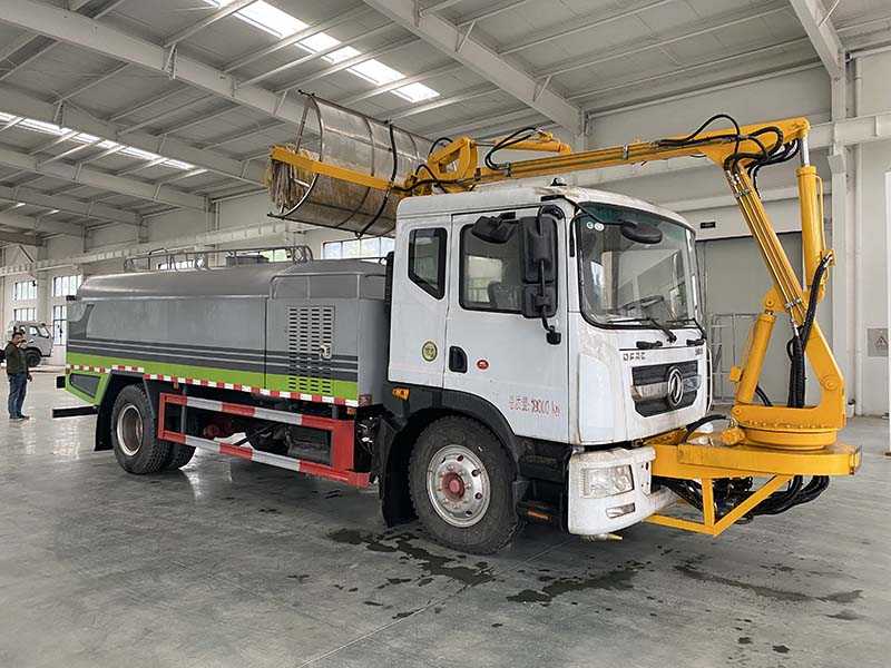 上裝罐體嚴格按公告尺寸制作,公告容積為:9.77立方米,實際容積約為12立方,罐體材質采用Q235碳鋼材質制作,前后封頭約為5mm,防浪板約為3mm,罐體防腐,上裝標配為:前沖、后灑、側防護、爬梯、后置工作平臺及S型高炮,炮調劑大雨、小雨、毛毛雨、采用灑水車大功率專用水泵。